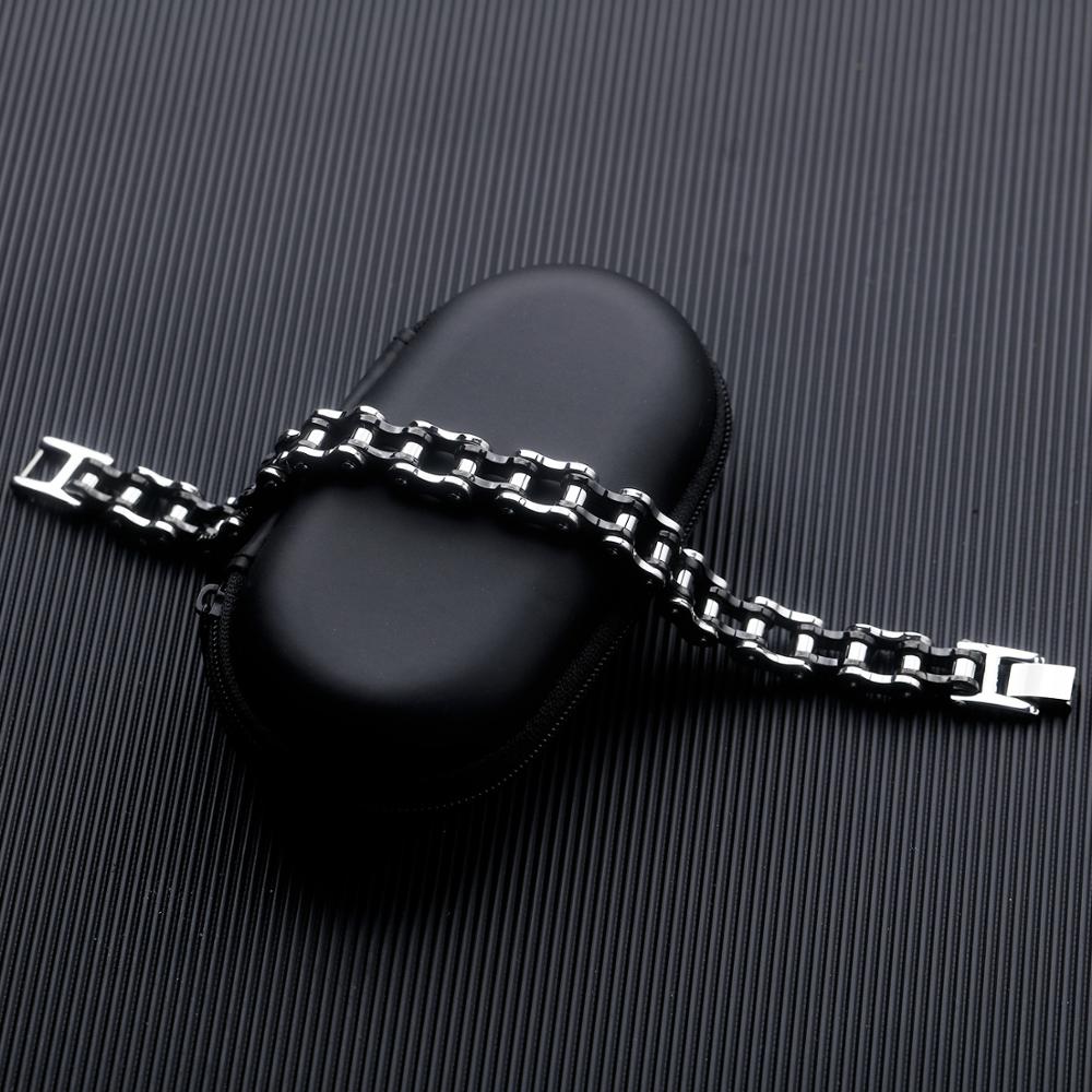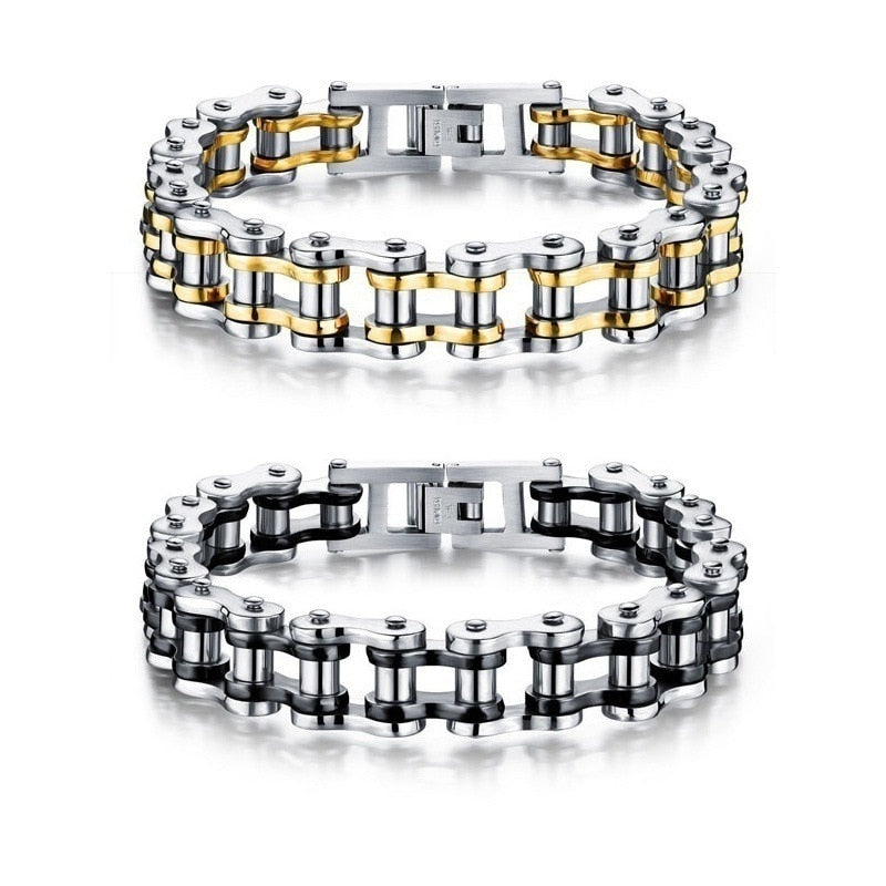 This bracelet is exquisitely made into the likeness of a motorcycle chain. Take your love for riding to the next level with our Stainless Steel Biker Chain Bracelet in your choice of color from silver, gold, two-toned gold silver, and silver black. It's the perfect piece for you or the perfect gift to someone who loves to ride through the wind because riding isn't just riding, its a lifestyle.